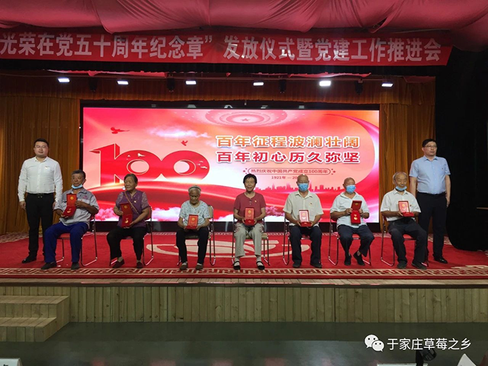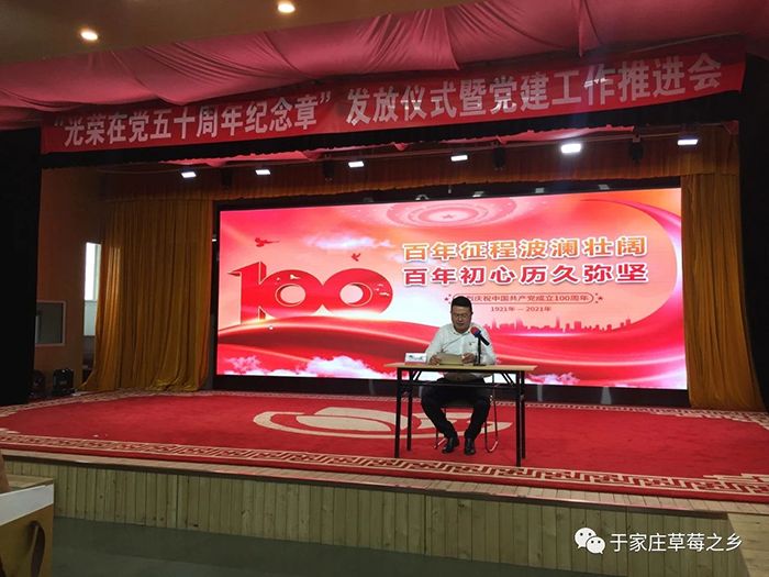 薪火相傳守初心,接續(xù)奮斗新征程。為慶祝中國(guó)共產(chǎn)黨成立100周年,推進(jìn)黨史學(xué)習(xí)教育走深走實(shí),進(jìn)一步增強(qiáng)廣大黨員的榮譽(yù)感、歸屬感和使命感,激發(fā)廣大黨員愛崗敬業(yè)、奮發(fā)有為的工作熱情,6月29日上午,于家莊鎮(zhèn)“光榮在黨50年紀(jì)念章”發(fā)放儀式暨黨建工作推進(jìn)會(huì)于保定市冠香居食品有限公司3樓“馨冠文化藝術(shù)館”隆重舉行。