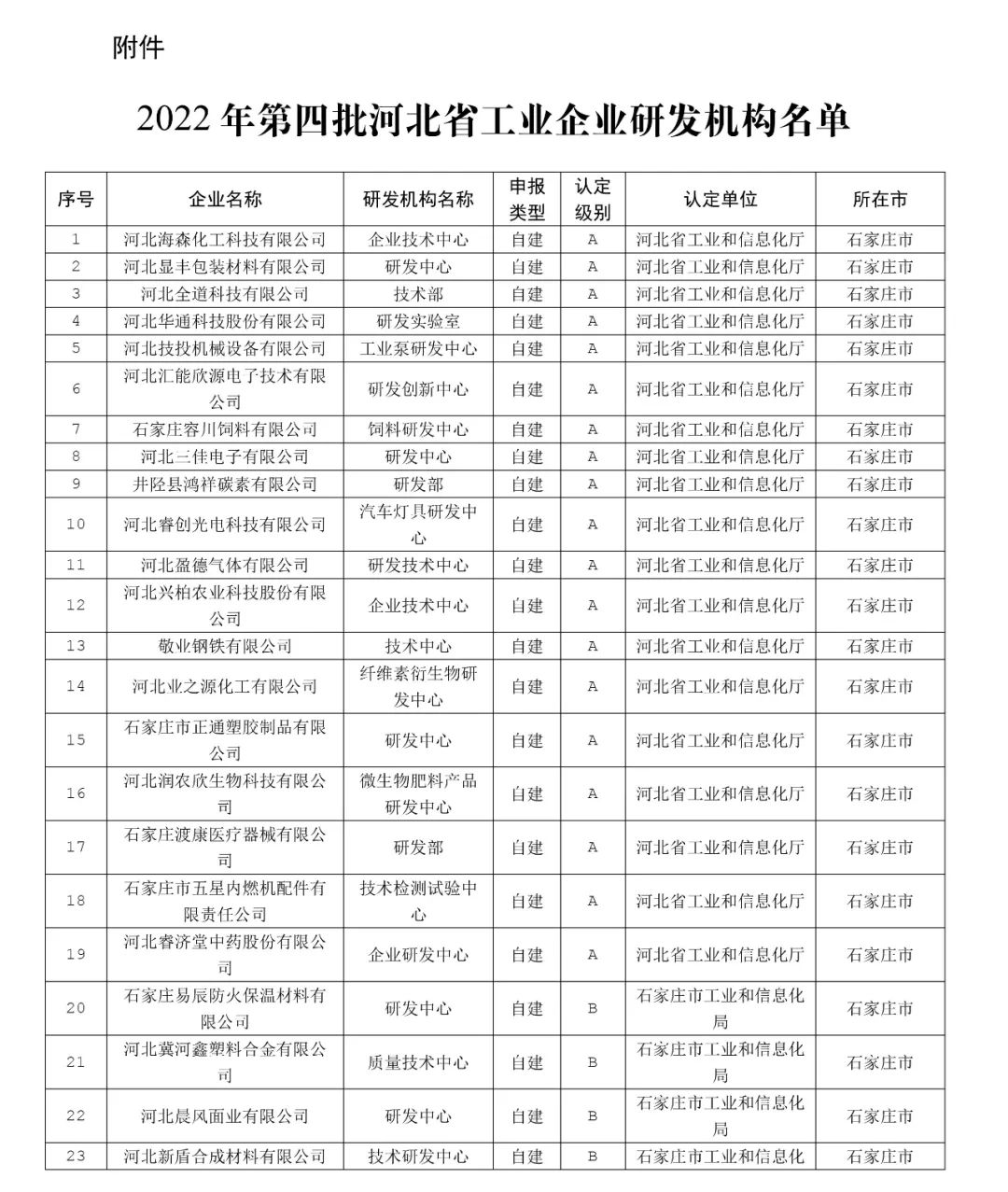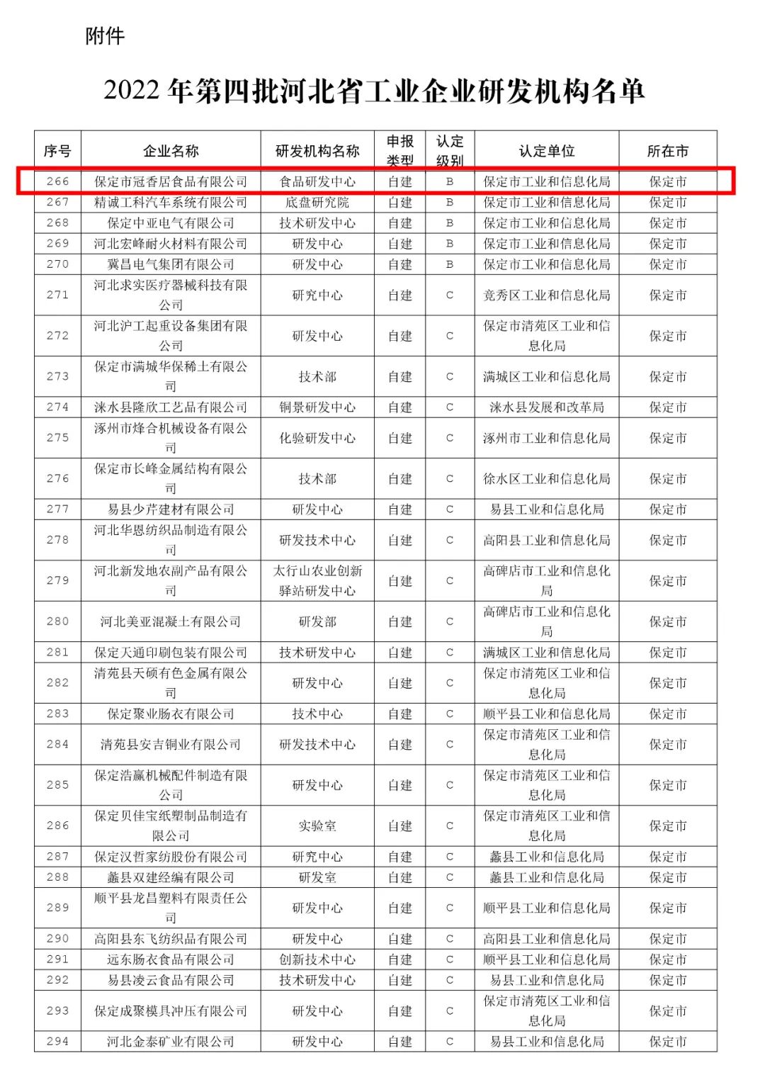 恭喜冠香居公司榮獲2022年第四批河北省B級工業(yè)企業(yè)研發(fā)機構