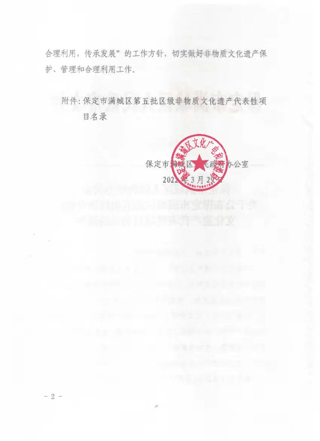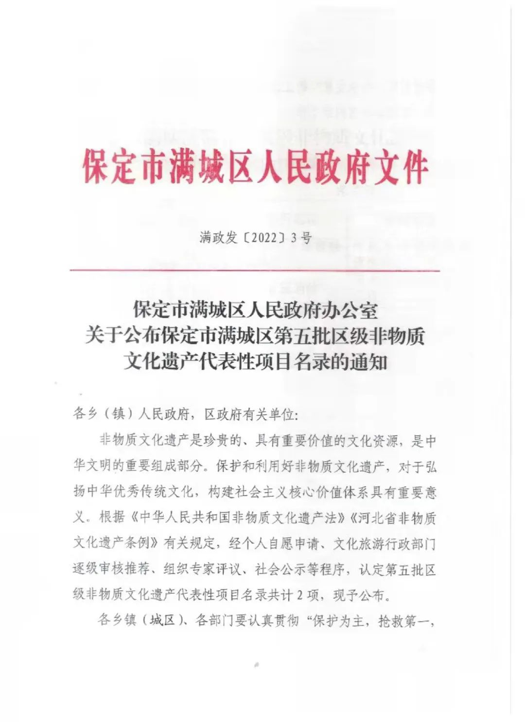 杜樹輝等3人為滿城區(qū)第三批縣級非物質(zhì)文化遺產(chǎn)代表性傳承人。